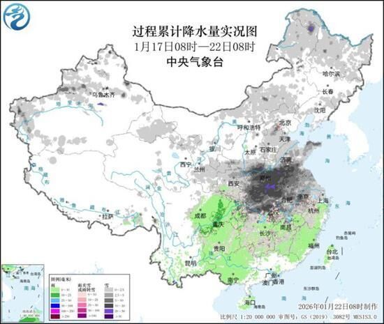 气象分析师介绍,本次降雪过程的核心区域为河南、湖北北部、安徽北部一带,部分地区出现大到暴雪,局地大暴雪。例如1月19日,安徽金寨、河南确山、湖北丹江口等地日降水量超过20毫米,郑州、合肥、武汉也都达到大雪量级。