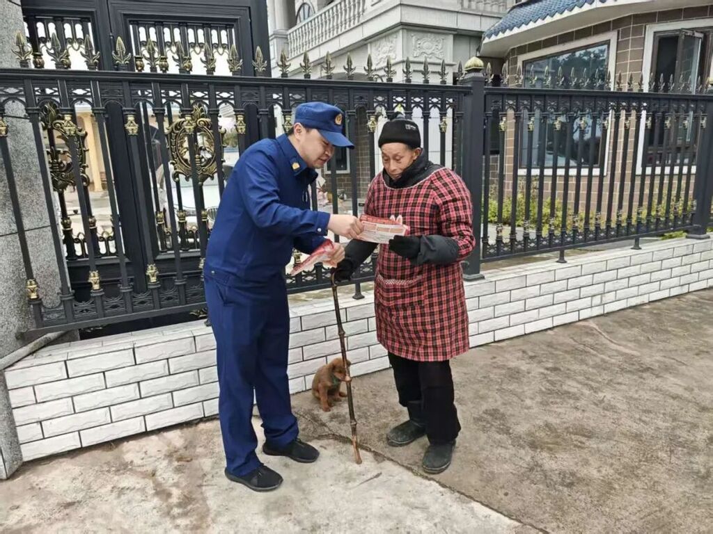 “大爷,冬天烤火一定要远离被褥、柴火,睡前记得关掉取暖器,千万不能私拉乱接电线!”“大姐,厨房用火要守着,燃气软管要定期检查,发现老化破损一定要及时更换,谨防燃气泄漏!”宣传人员走进每一户村民家中,重点围绕冬季取暖、厨房用火用气、秸秆堆放、电动自行车停放充电等农村高频消防安全隐患,逐一讲解防范要点,结合辖区内乡村火灾典型案例,剖析火灾发生的原因、危害以及初期火灾扑救方法、火场逃生自救技巧。