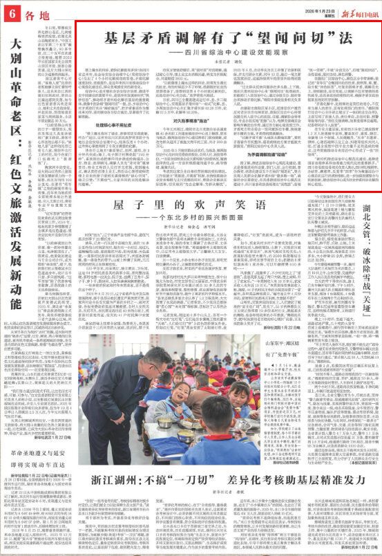 综治中心是开展社会治安综合治理、推进平安中国建设的重要平台,是坚持和发展新时代“枫桥经验”、推动将矛盾纠纷化解在基层的重要载体。就像中医诊病“望闻问切”一般,县、乡综治中心对矛盾进行充分“辩症施治”,把矛盾事项作为整体来对待,进而联动各方综合施治,显著提升了化解效能。