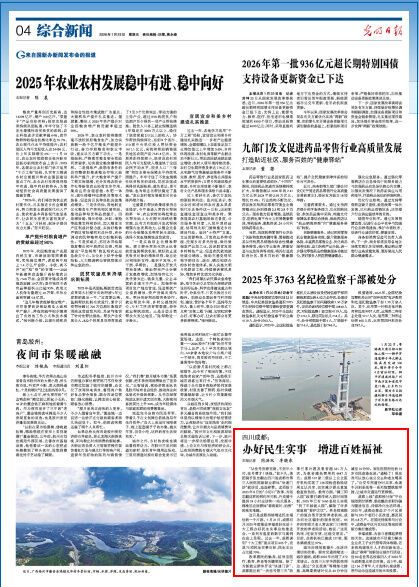 城市治理效能提升,生活环境切实改善。面对交通拥堵这一城市通病,成都2025年治理了372项堵点。在四川大学华西医院周边,通过“分区抵离”等精细化措施,高峰期拥堵时长从40分钟压减至10分钟。家住医院附近的73岁市民俞涤生说:“通畅了!现在我可以放心坐公交去和老友喝茶了。”公交专用道分时共享、龟速车识别系统等一系列智慧赋能举措,让城市交通运行更顺畅。