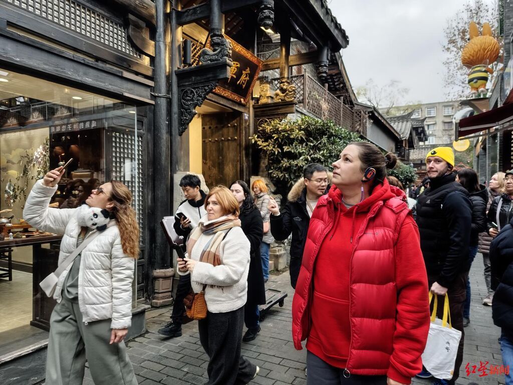 ▲俄罗斯旅游从业者在宽窄巷子考察