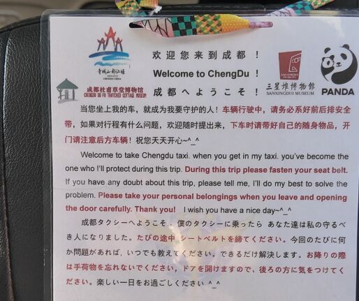 卜晔阳的车,外表与街头其他出租车无异,内里却处处透着“小心思”。为抵御夏日灼晒,他自装了遮阳帘;细心观察乘客状态,随时调整车速以防晕车;后座悬挂着中、英、日三语欢迎卡,上面写着:“欢迎来到成都,当您坐上我的车,就成为我要守护的人。”