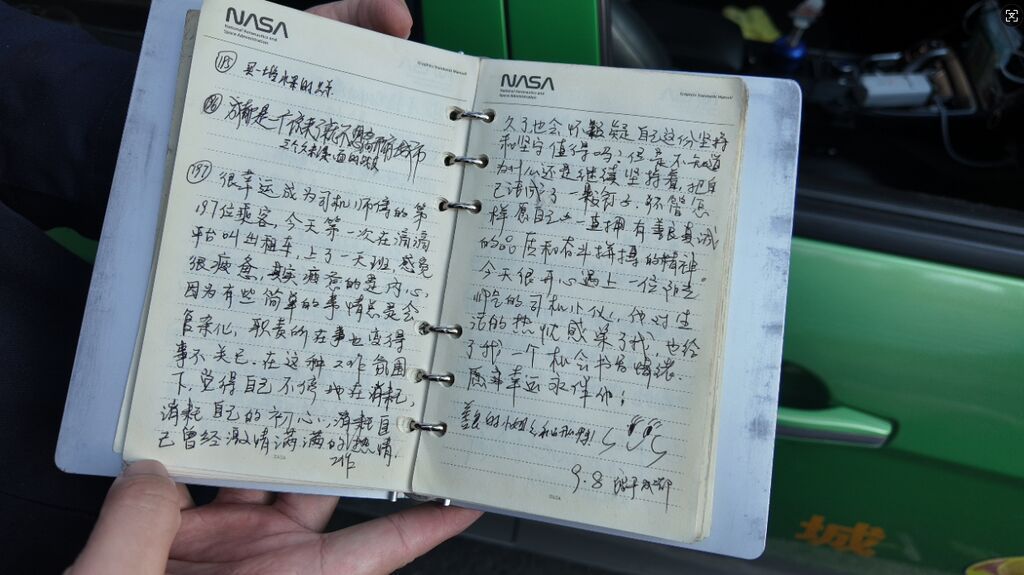五年来,22700组乘客在卜晔阳的留言本上写下了喜忧参半的故事,但也带着最真实的温度。“人生百态,这四个字足够了。”卜晔阳说,“也许此生就这一面之缘,能在这一段路里,让他们感到一丝轻松或温暖,就值了。”