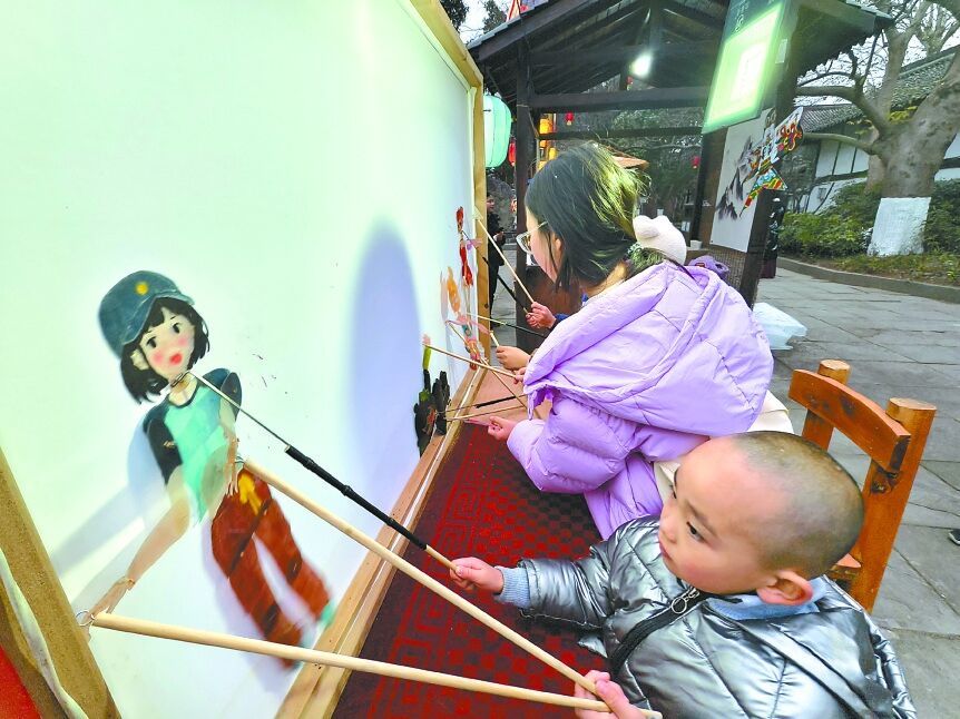 1月18日下午,阆中古城大东街王皮影博物馆内,川北皮影经典剧目轮番上演;幕布之后,“王皮影”第七代传承人王访兄弟十指翻飞,正演绎着这门已传承350余载的非遗技艺。