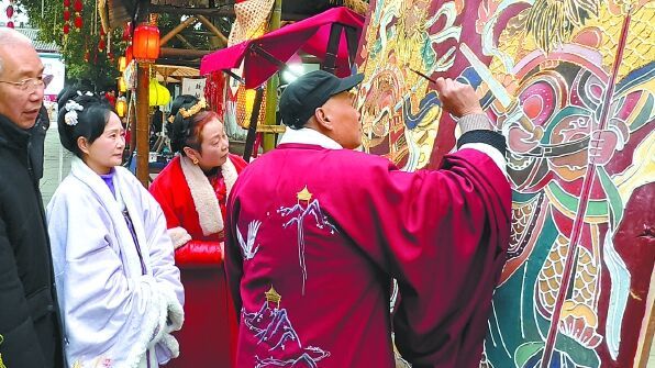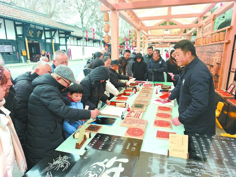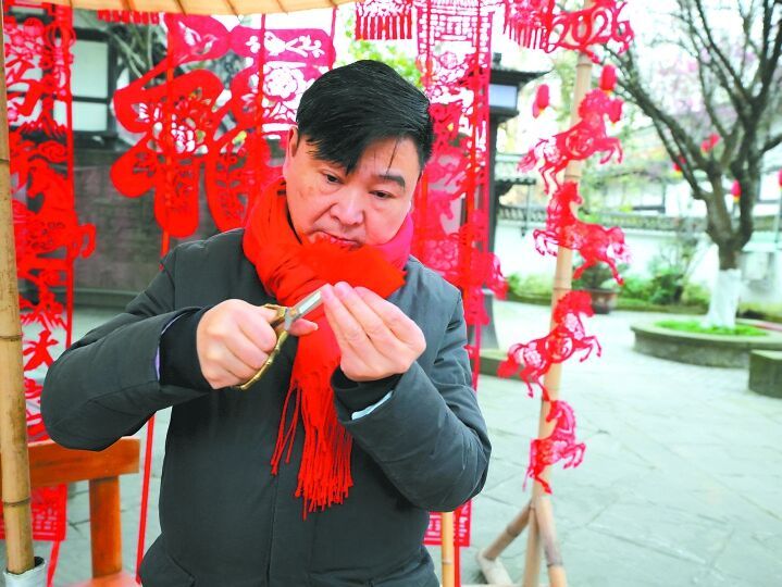 在阆中,还有张桅、杨勇、邓荷娟等众多非物质文化遗产代表性传承人,他们以热爱与坚守守护文化遗产。通过系统性挖掘与创新,阆中目前已改进非遗技艺16种,培养传承人500余名,复现古代民俗活动50余种,培育出涵盖非遗体验、实景演艺、主题旅拍等多元业态。张桅探索以现代油画技法诠释传统门神形象,让古艺在中西融合中焕发新生;保宁醋文化博览园的酿造工艺体验活动广受欢迎;丝毯织造技艺传习中心内,手工编织成为热门打卡项目……