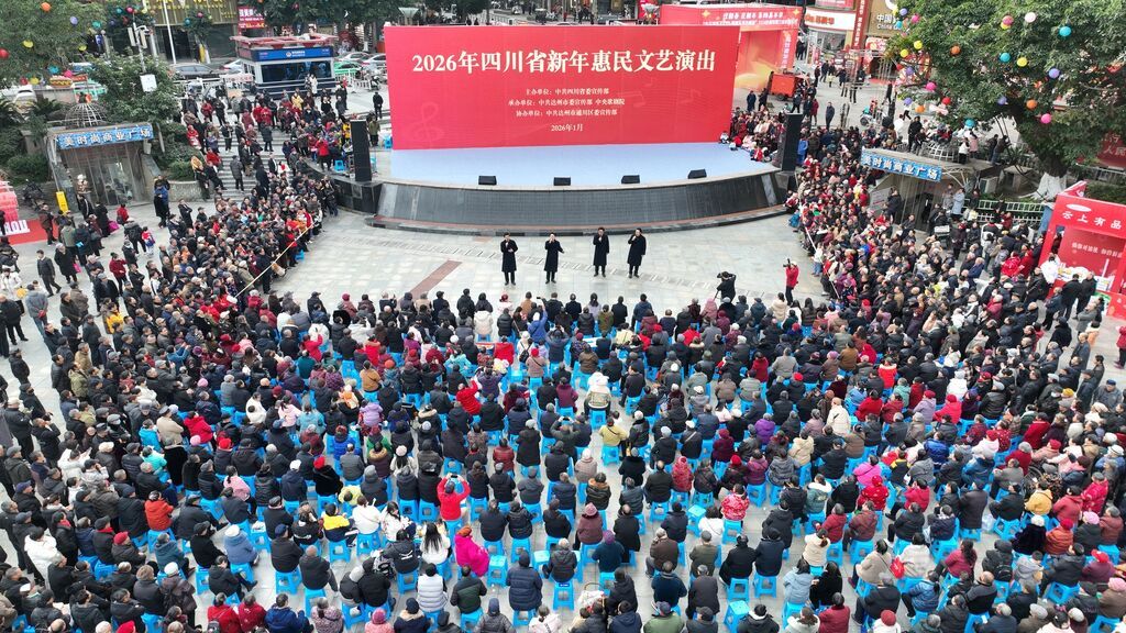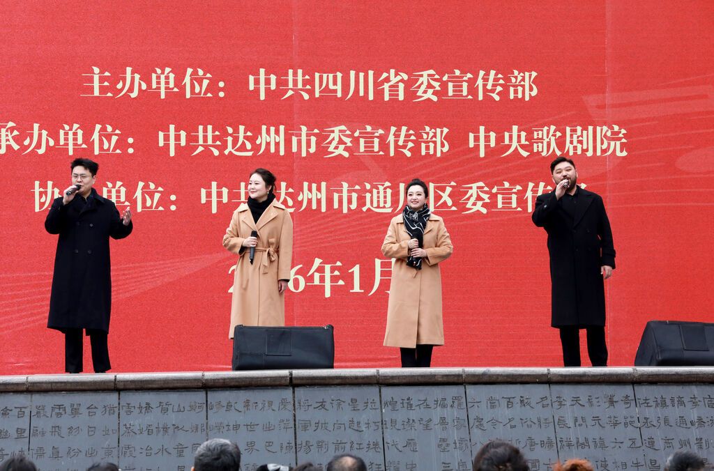 1月23日下午,达州市通川区城市中心广场,中央歌剧院的多名艺术家登台演唱,拉开了2026年四川省新年惠民文艺演出活动的序幕。