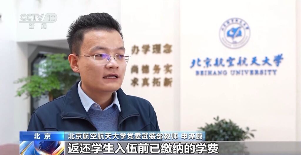 北京航空航天大学党委武装部教师 申泽鹏:学费补偿是指返还学生入伍前已缴纳的学费,未缴纳的就直接免除,已缴纳的就全额退还。代偿指的是学生应征入伍前,如果已申请国家助学贷款,国家也会帮着学生去代偿,完成这部分贷款的还清。