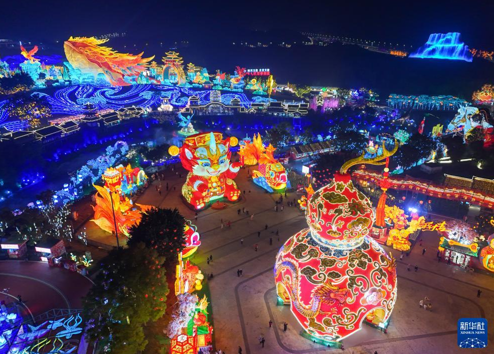 1月23日晚,第32届自贡国际恐龙灯会亮灯暨四川省迎春文旅促消费活动在四川省自贡市中华彩灯大世界启幕。