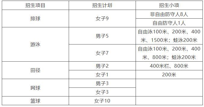 2.体育专项成绩录取控制线:田径、篮球、游泳、蹼泳、足球项目不低于70分,羽毛球项目不低于50分。