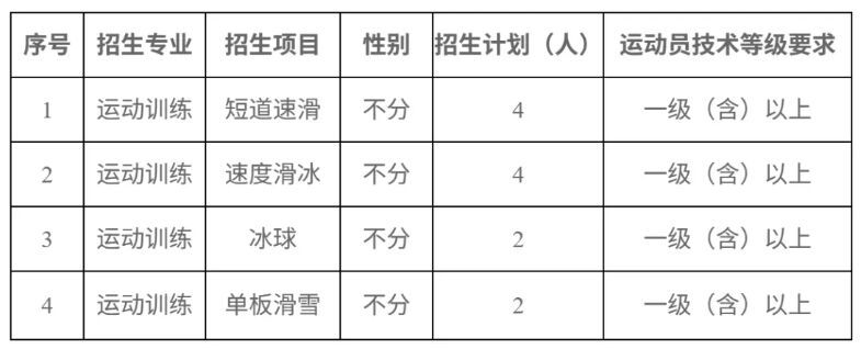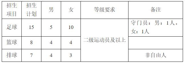 排球(男非自由人)、篮球、射击、跆拳道要求一级运动员(含)以上运动技术等级称号,其他招生项目要求二级运动员(含)以上运动技术等级称号。