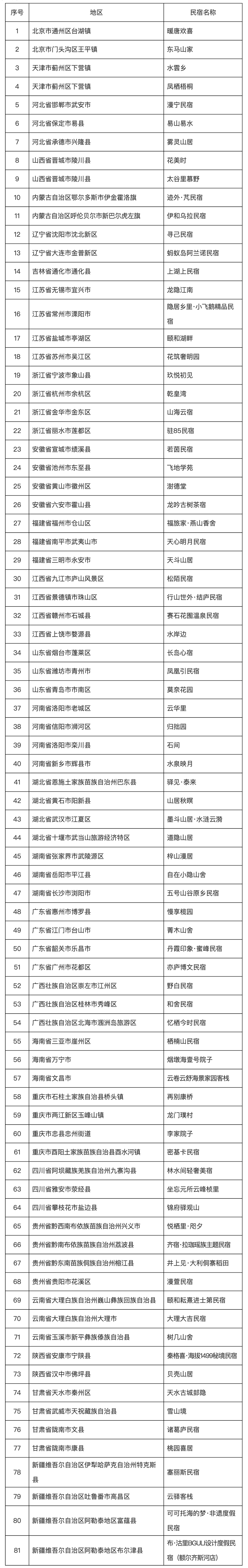 文化和旅游部1月26日发布2025年全国甲级、乙级旅游民宿名单。根据《〈旅游民宿基本要求与等级划分〉(GB/T 41648—2022)实施工作导则》,81家旅游民宿符合全国甲级旅游民宿标准,104家旅游民宿符合全国乙级旅游民宿标准。