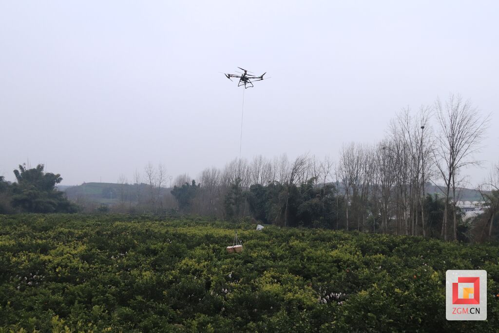 1月24日,荣县双石镇插旗村的果园里,一个个白色套袋如繁星挂满枝头。袋中孕育的“金果子”,已被省外果商订购20万斤。田间,村民们麻利地采摘;空中,大型农用无人机频繁起降,引擎轰鸣、桨叶呼啸间,便将满筐柑橘稳稳吊运至集装点。