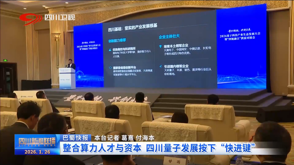 在1月26日召开的量子科技产业生态发展大会暨“四链融合”供需对接会上,四川省发布全栈国产化“四算融合”超节点,首次将量子算力与超算、智算、云计算深度整合,标志着四川在构建自主可控算力底座上取得突破。同期,量子科技学院、产业基金及协会正式成立,共同推动量子技术从实验室加速走向产业化应用。