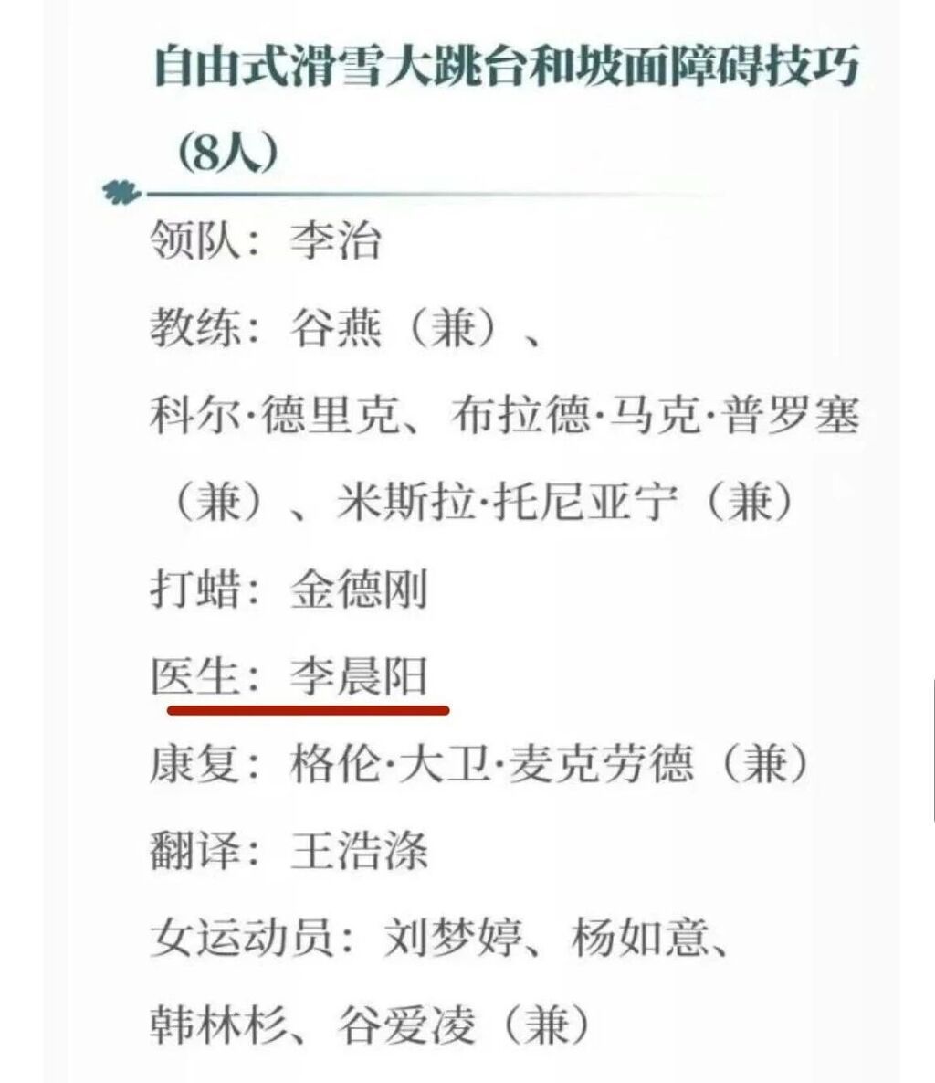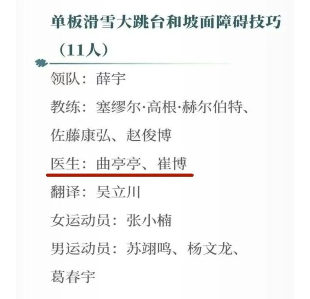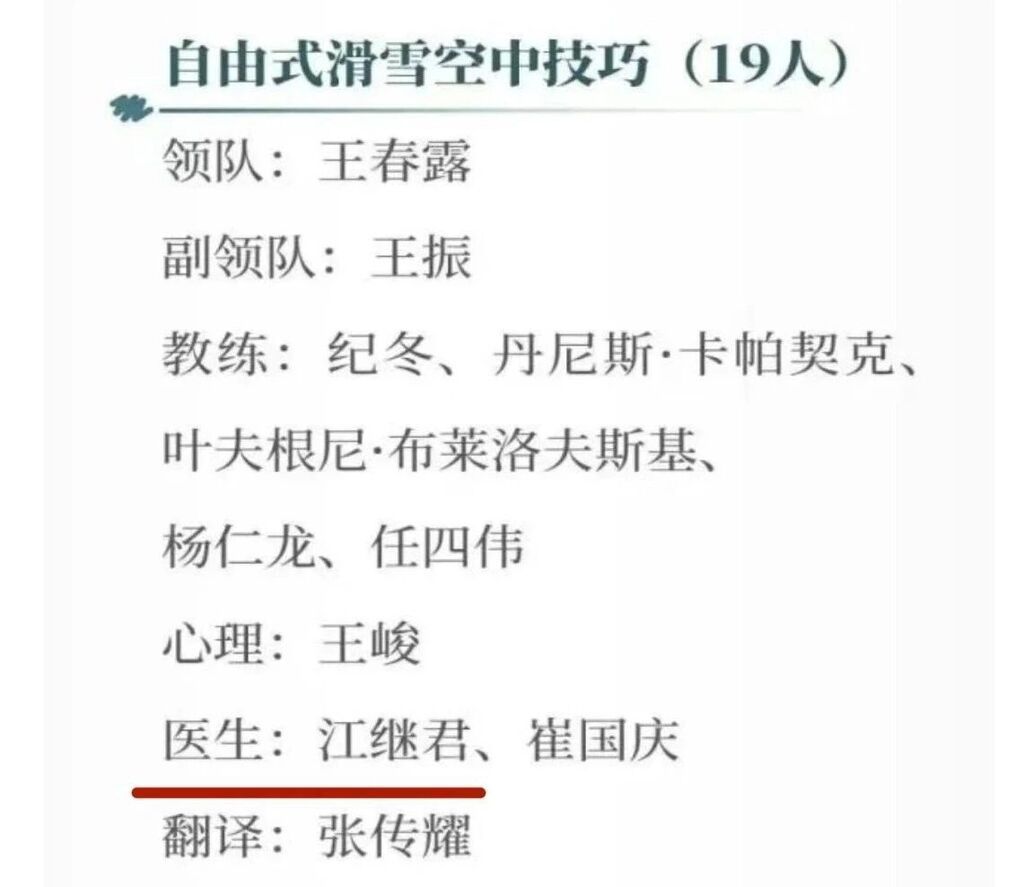 米兰冬奥会保障营:罗小兵主任医师(保障营专家)、程远东副主任医师(花样滑冰国家队队医)、游亮亮康复治疗师(自由式滑雪空中技巧国家队康复师)