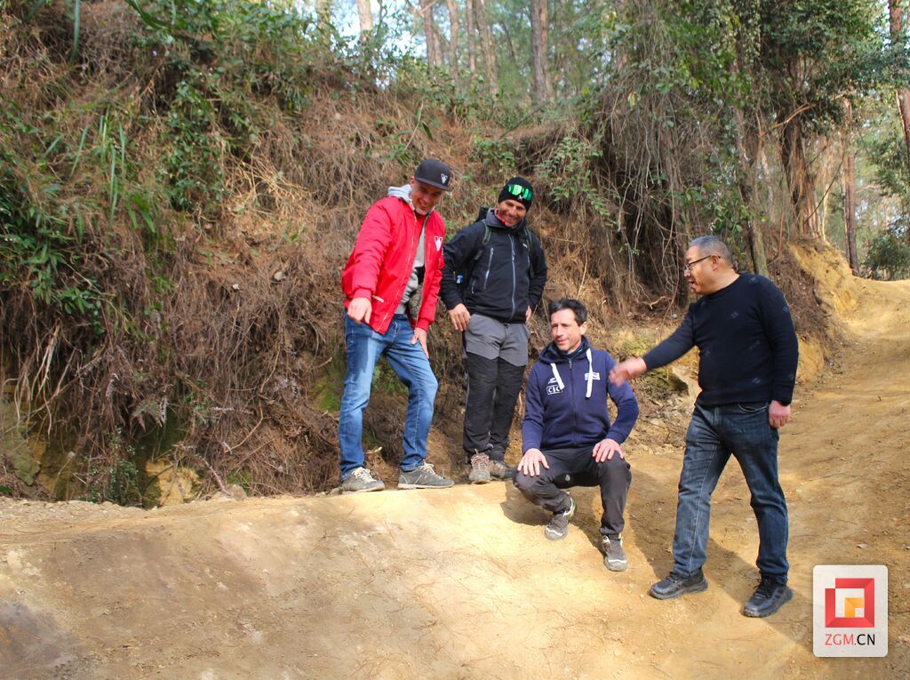 来自法国的专家团队现场介绍了赛道规划。据悉,三条专业赛道依高石梯独特山形而建,形成覆盖初、中、高级的完整体系。其中,速降赛道自观景台附近山顶延伸至山脚,长达1100米以上的红色中级赛道专为具备一定基础的骑行者设计,重点考验操控技巧;超过1700米的黑色高级赛道设有双路线选择,穿越崖壁落差显著的核心区域,地形极具挑战性,可满足专业选手竞技需求。沿山脚老煤矿运输遗址修建的蓝色初级赛道,则以平缓路线适配新手,实现了运动体验与工业遗存的巧妙结合。三条赛道均符合国际赛事标准,未来可承办国内外各类山地自行车赛事及专业训练。