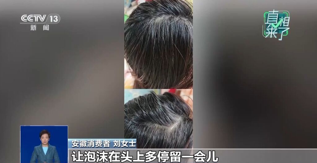 美发护发从业者 王先生:消费者觉得这个东西方便,洗洗就黑了,但是它和你要深层地把头发全部做的很黑,像长出来一样很自然,是没有的。这个原理跟染发剂一样的,换一种方式,通过洗头的方式洗黑。一开始是稍微带点黑的,过两个月左右就会褪掉颜色,白头发的颜色就会褪出来。
