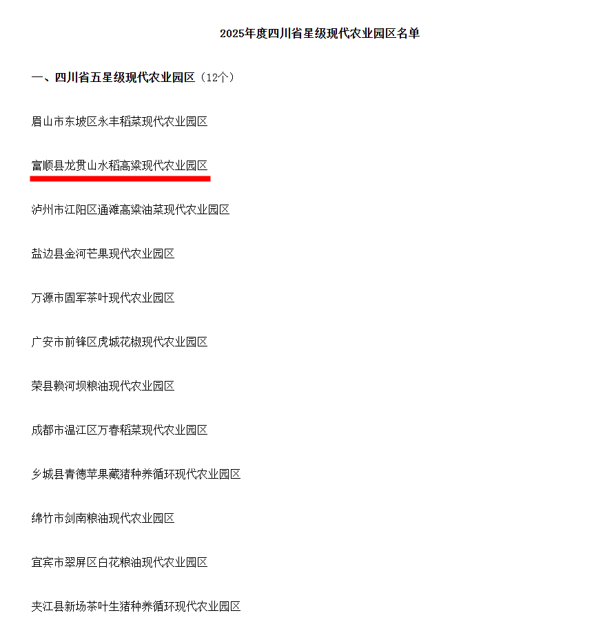2025年度四川省五星级现代农业园区