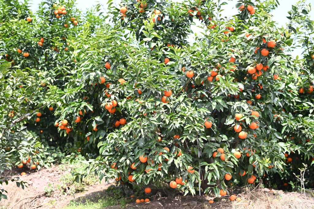 位于东佳镇顺河村的万亩柑橘产业园,是该镇总面积近2万亩的核心阵地。园区种植面积超1万亩,核心区达6000余亩,爱媛、沃柑、春见、塔罗科血橙等优质品种在此“安家”,年产量突破3万吨,总产值超9000万元。“我们采取‘合作社+家庭农场+种植大户’模式,已培育省级专合社1个,发展家庭农场23个,注册‘老农东橙’品牌,推动优质柑橘走进更广阔市场。”园区负责人黄少逶介绍。