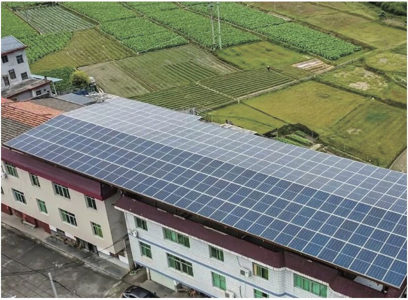 一些乡镇推进光伏发电下乡项目。图为农户在自有屋顶安装光伏板,进行光伏发电。(受访者提供)