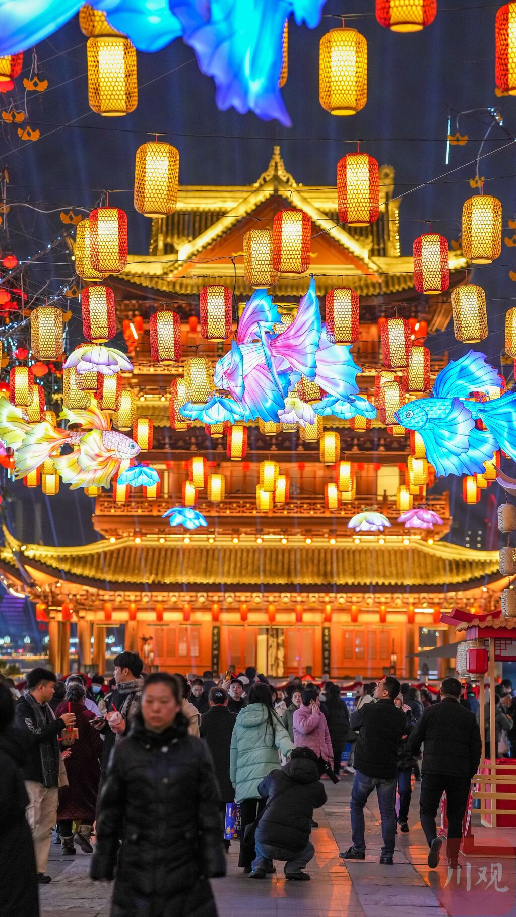 1月25日,宜宾合江门广场附近的街巷已悄然换上了“春晚皮肤”。各式鱼灯、花灯、宫灯高挂,暖光映照着古朴的石板路;糖画、面人、写春联的摊档依次排开……浓郁的年味与地道的川南风情扑面而来。随着中央广播电视总台2026年春晚分会场落户宜宾,这座城市已换上盛装,以热情的姿态迎接这场盛事。