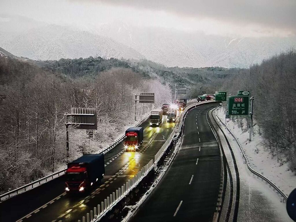 目前,四川高速公安六分局采取定点示警、警车带道通行等方式,保障出行车辆安全有序通过冰雪路段。