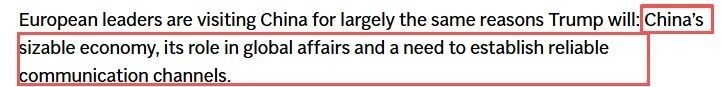 文章分析说,欧洲领导人访华的原因主要是基于中国庞大的经济规模、在全球事务中的作用以及建立可靠沟通渠道的需要。