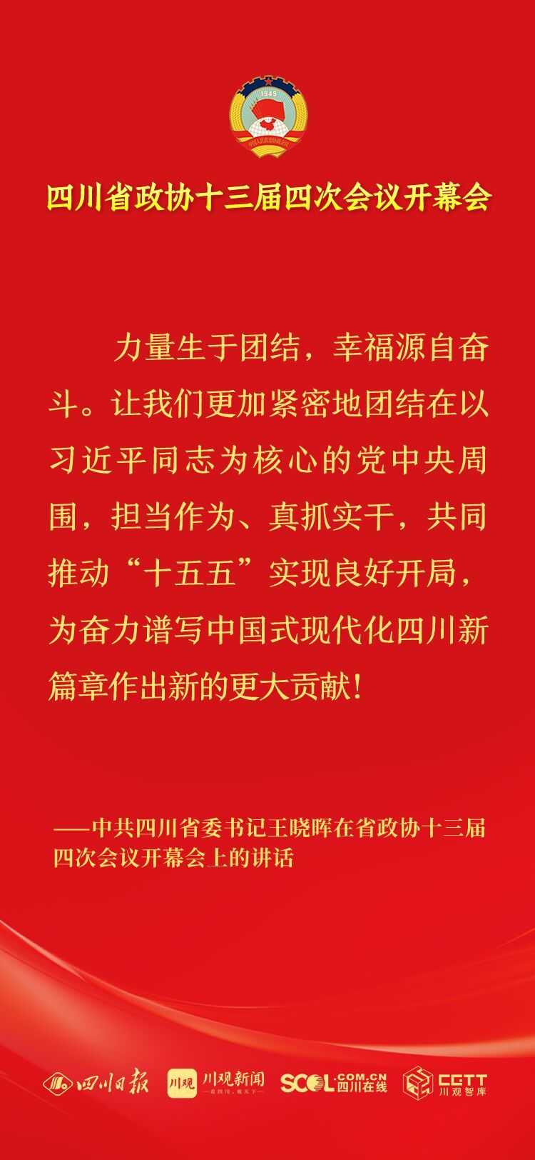2月2日上午,政协四川省第十三届委员会第四次会议在成都开幕,中共四川省委书记王晓晖讲话。