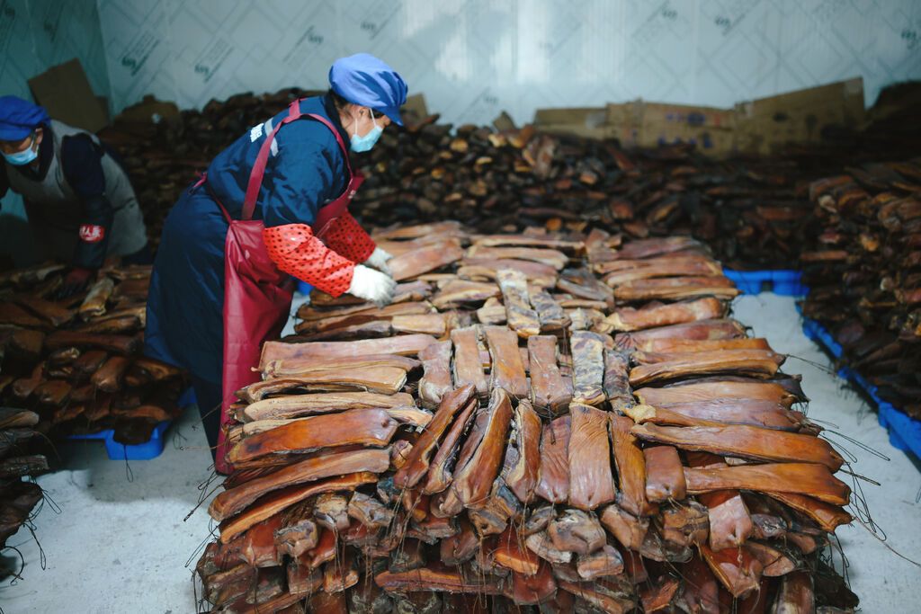 “目前我们正在计划开通跨国贸易,把腊味寄往韩国、日本等地……”说话间,刘如国顺手拿起一把松柏枝加入炉膛,松枝燃起青烟,噼啪作响间,烟雾裹着松香味燎过肉块,翻滚飘散。