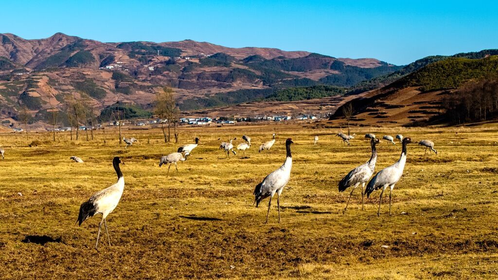 每年冬日,黑颈鹤、灰鹤等上万只珍稀候鸟如约而至。