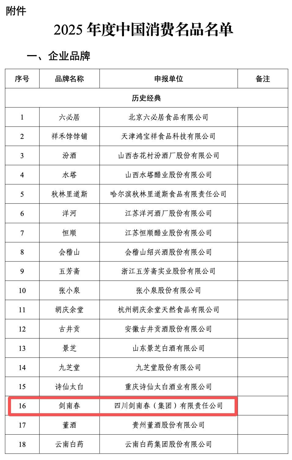 2月3日,川观新闻记者从工业和信息化部网站获悉,近日,2025年度中国消费名品名单正式公布。四川剑南春、康弘、彩虹等企业品牌和东坡泡菜、自贡彩灯、川南竹浆纸等区域品牌成功入选,涉及轻工、食品、医药等消费品领域。