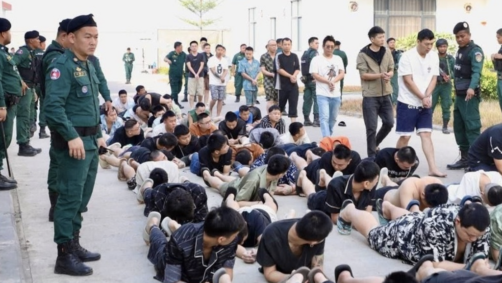 ▲柬警方上月在一处电信诈骗园区抓获2044名涉诈人员