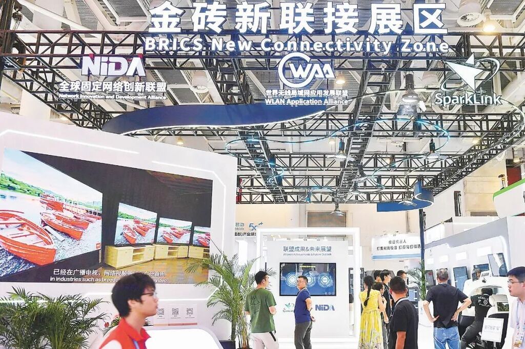 以“携手构建高质量伙伴关系,开启新型工业化合作新征程”为主题的2024金砖国家新工业革命展在福建厦门国际会展中心举行。图为观众在展馆内参观。张斌摄(影像中国)