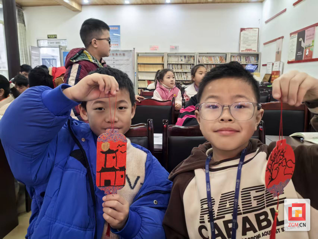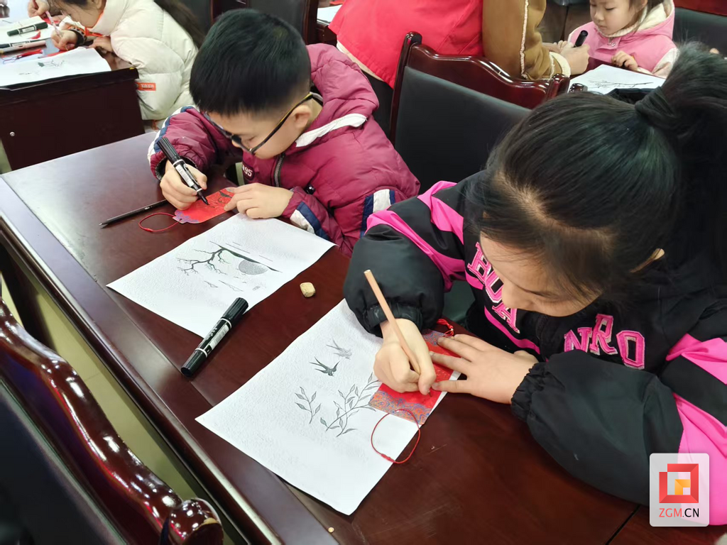在创作环节,孩子们以红色、金色为主色调,发挥想象力,将梅花、松树、祥云等传统元素融入书签设计。他们用画笔勾勒线条,点缀金粉,创作出一枚枚兼具实用性与艺术性的国风书签。活动现场气氛热烈,孩子们在动手实践中加深了对传统文化的理解与热爱。