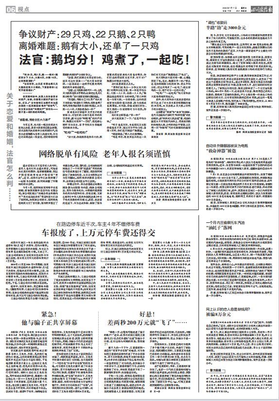 这是一起十分“接地气”的离婚财产分割案。去年五月,杨大哥一纸诉状将涂大姐告上法庭,表示夫妻感情已完全破裂,请求人民法院判决离婚并分割共同财产,争议财产为29只鸡、22只鹅、2只鸭。