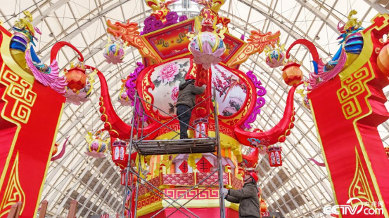 春节临近,在山东青岛西海岸新区中铁世界博览城,来自“彩灯之乡”四川自贡的工匠们在精心制作和组装大型灯组,迎接即将开幕的马年灯会。