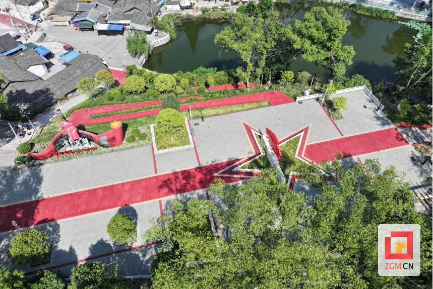 口袋公园不仅是休闲空间,更是承载文化记忆、传递民生温情的载体。富顺县深挖地域文化底蕴,将井盐文化、豆花文化等特色元素融入星河国际公园建设中,再依托原有地形地貌,融合山景和水景等,打造出层次丰富、兼具颜值与内涵的立体景观,让居民在休闲漫步中感受城市文化底蕴。五虎山口袋公园更以“传承红色基因、深化双拥共融”为核心理念,通过五角星铺装广场与双拥主题青铜群雕,构建起沉浸式红色叙事场景,既成为市民休闲的新场所,也成为传递红色精神、凝聚邻里情感的重要阵地,让文化惠民落地生根。