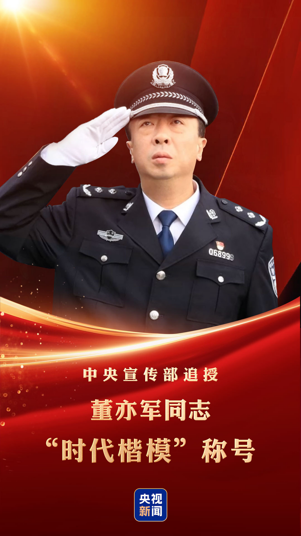 中央宣传部向全社会宣传发布董亦军同志的先进事迹,追授他“时代楷模”称号。