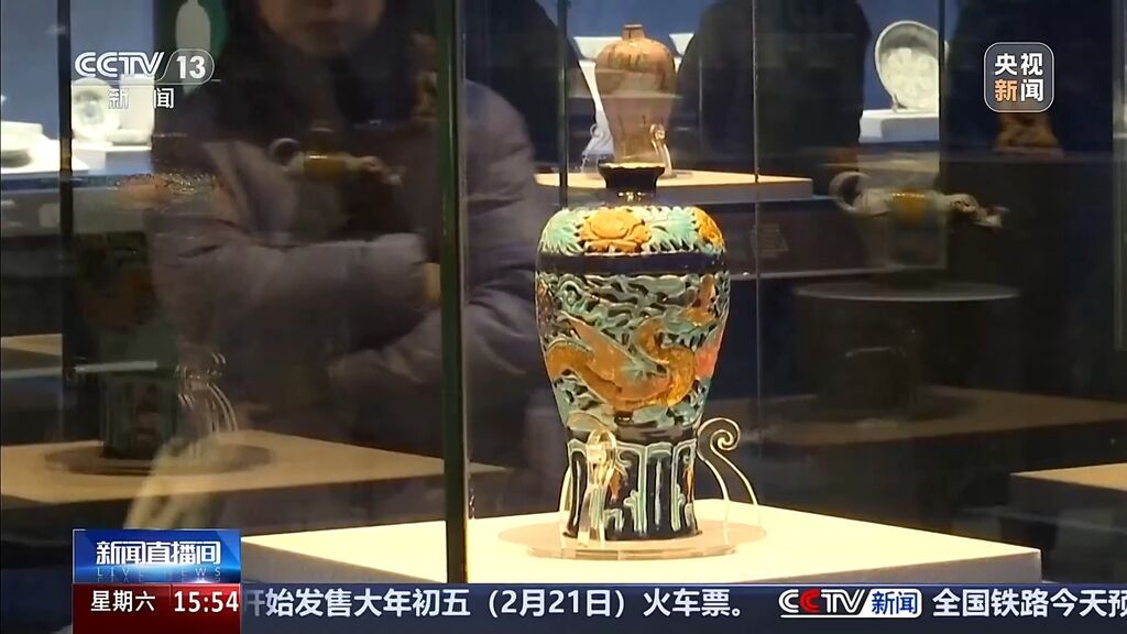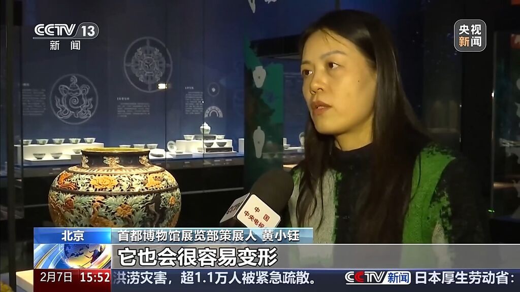 首都博物馆展览部策展人 黄小钰:这件珐华器工艺非常复杂,器型也很大,同时还有双层镂空。从器型、颜色、镂空工艺来看,这件文物保存得很好、十分精美。