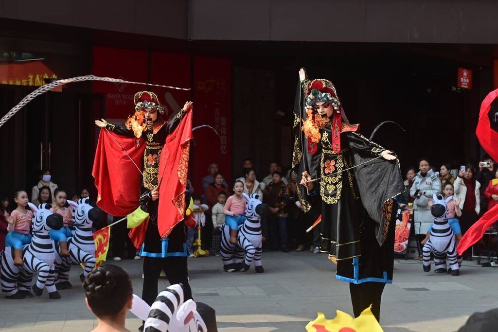 除了静态的技艺展示,动态的民俗展演更是点燃了现场氛围。木偶吐火表演现场,随着演员手中的丝线牵动,木偶时而摇头,时而喷出熊熊火焰,刺激又精彩的表演让观众屏息凝神,掌声、欢呼声此起彼伏。