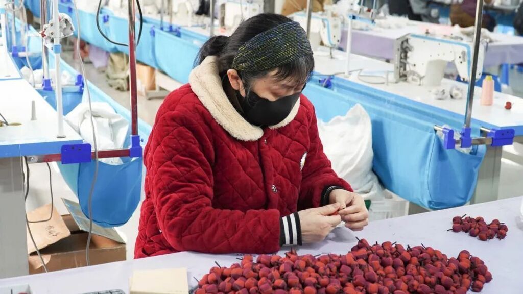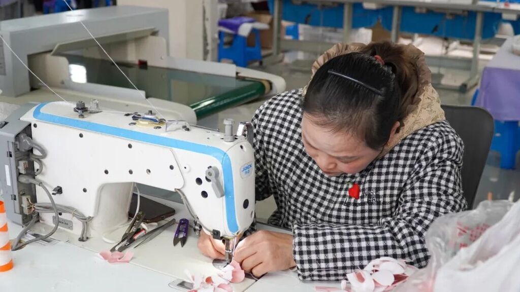 目前,该企业月均生产玩偶约15万只,产值达100万元。工厂实行计件工资制,已吸纳全职妈妈、需居家照顾老人人员、下岗职工等130人灵活就业。新手月收入约2500元,熟练工可达4000元及以上。
