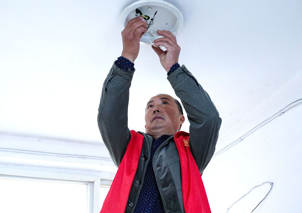 在吕翠英家做完大扫除,段兴华又马不停蹄地来到了独居老人王绍奎的家中。今年76岁的王绍奎身患疾病,行动不便,灯泡坏了,第一时间想到了段兴华。“不管有什么事情,只要给段兴华或者社区打电话,他们就马上来办,让我感觉心里暖暖的,也不觉得孤独。”提起段兴华和社区,王绍奎便竖起了大拇指。