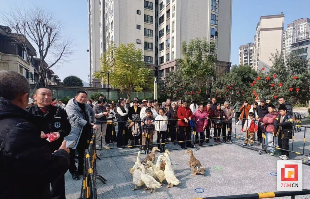 “套中啦!这只鸭子归我咯!”近日,荣县梧桐街道水井湾社区里欢呼声此起彼伏,一场热闹的“欢乐套鸭”迎新春活动正在上演。社区联合辖区物业公司搭起“赛场”,300余名居民欢聚一堂,在套鸭游戏中比拼手气、分享喜悦,提前感受浓浓的年味。