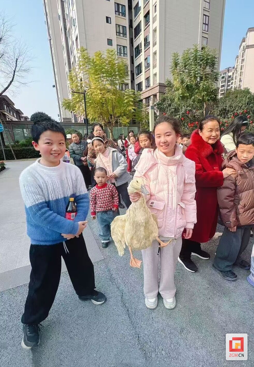 活动现场,十几只肥嘟嘟的鸭子被圈在围栏里,扑腾着翅膀“嘎嘎”叫。居民们手持圆环,有的瞄准目标屏气凝神,有的摆开架势反复调整角度,孩子们更是蹦蹦跳跳地为家长支招。“哎呀,就差一点点!”“爸爸,往左边套!”笑声、喊声、喝彩声交织成一片,平日里忙于工作的邻居们此刻围在一起,你一言我一语地唠着家常,陌生的面孔渐渐熟络,社区里满是烟火气与亲切感。