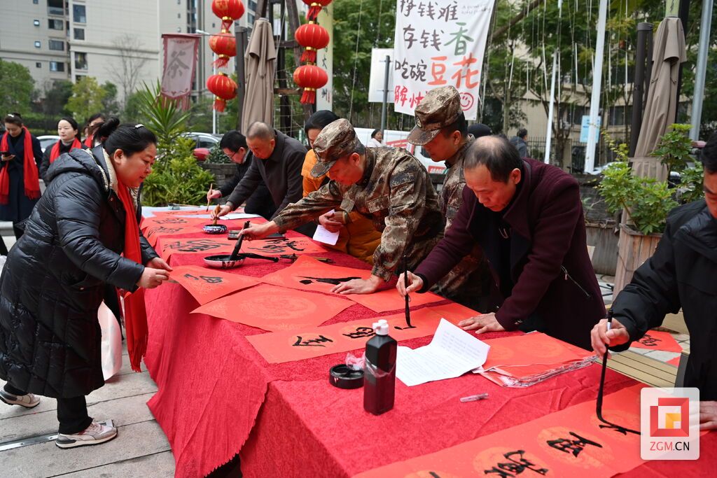 服务多元,惠民举措暖人心。活动现场,退役军人志愿服务队与“众乐”社工志愿者分工协作,围绕群众需求开展义务理发、春联书写、健康义诊、安全检查等多项公益服务,志愿者们手持剪刀,为近20名居民免费修剪头发,细致的服务让群众直呼“贴心”;医疗志愿者范长青等为30余名群众测量血压,提供健康咨询,普及冬季养生知识,守护居民健康;书法志愿者莫玉文等挥毫泼墨,现场书写春联40余副,将新春的祝福与传统文化融入笔尖,传递节日温情;志愿者甯炀等走进社区和餐饮店,对消防通道、灭火器等设施进行全面检查,及时消除安全隐患,筑牢社区安全防线。