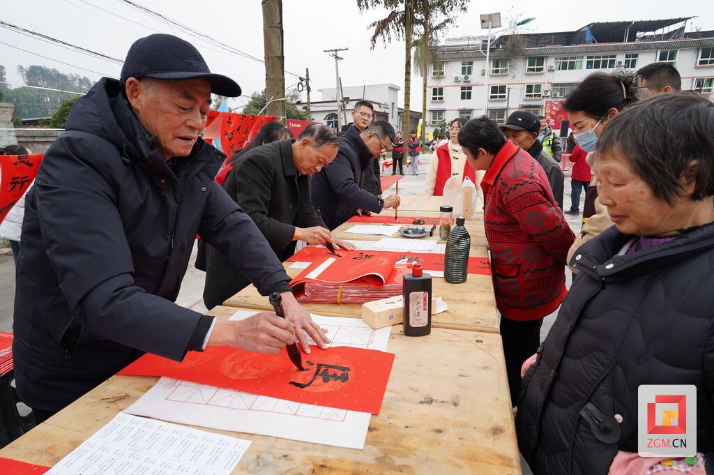 除了精彩的抽奖环节,现场写春联和拍福照的活动也备受村民们喜爱。书法爱好者们挥毫泼墨,为村民们书写了一副副寓意吉祥的春联。村民们围在一旁,欣赏着书法家们的精湛技艺,挑选着自己心仪的春联。一副副春联不仅传递了新年的祝福,更让村民们感受到了传统文化的魅力。与此同时,拍福照的活动也在如火如荼地进行着。村民们携家带口,来到精心布置的拍照区,留下了一张张温馨的全家福。摄影师们用镜头捕捉下了村民们幸福的笑容和团圆的时刻,让这份美好的记忆永远定格。