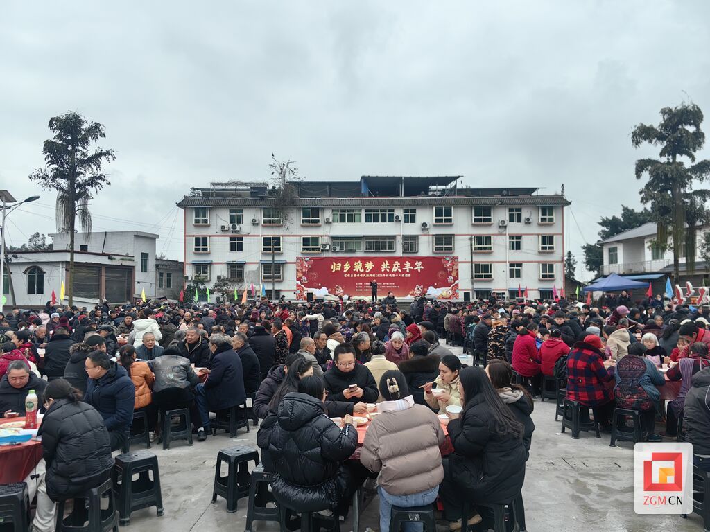 新春佳节之际,富顺县童寺镇天池湖村沉浸在一片欢乐祥和的氛围中。2月9日,以“归乡逐梦 共庆丰年”为主题的童寺镇天池湖村2026年村晚暨千人团圆宴在陶艺小院文化广场热闹上演,为村民们带来了一场充满年味与温情的文化盛宴。
