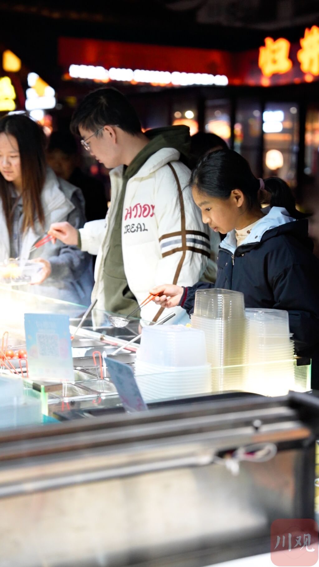 全长约800米的沉浸式宋韵主题街区,通过仿宋建筑、灯光秀与情景演艺,再现宋代市井繁华。春节期间,不夜城围绕“宋韵年味”推出系列节庆活动,重点包括“广安奇妙夜”水上沉浸式演艺、“龙腾賨城·狮舞盛世”民俗巡游。街区还设有7个大舞台轮番上演各类节目,游客可身着古装穿梭于街巷,欣赏糖画、舞狮等传统技艺,一秒“穿越”宋朝,体验浓厚的春节氛围。