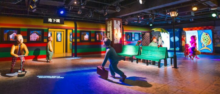 推开剧场大门,一个个实景还原的绘本场景映入眼帘:运行中的地下铁、蓝色的沉浸空间……沿着绘本风格楼梯,步入VR体验区,在海上地铁、童话麦田中与心爱的宠物告别,选择向左走还是向右走,探索不同门背后别样的故事。
