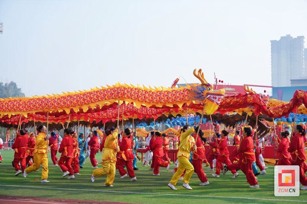 深厚的文化底蕴,让富顺龙狮不仅在民间沃土扎根生长,更在竞技赛场上大放异彩、誉满全国。2022年12月,中国龙狮公开赛(四川富顺站)圆满举办,富顺凭借完善的赛事保障与浓郁的文化氛围,为全国龙狮爱好者搭建了互学互鉴、交流共进的优质平台,让富顺龙狮的品牌影响力持续提升。在2025年第十五届全运会群众展演舞龙舞狮比赛中,由四川师范大学学子组建的四川队表现惊艳,其中三位富顺籍选手与队友默契配合,在舞龙障碍项目中以1分03秒44的成绩刷新全国最佳纪录,一举斩获一等奖,用实力让富顺龙狮文化走出四川、闪耀全国。