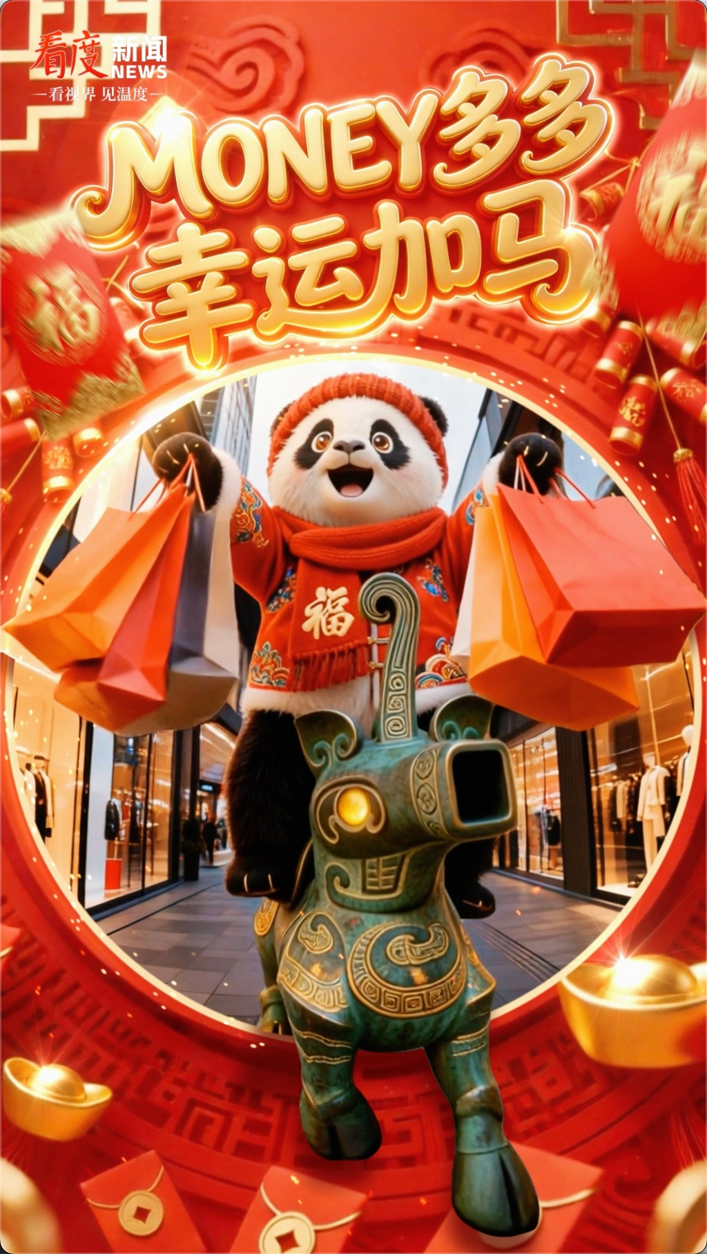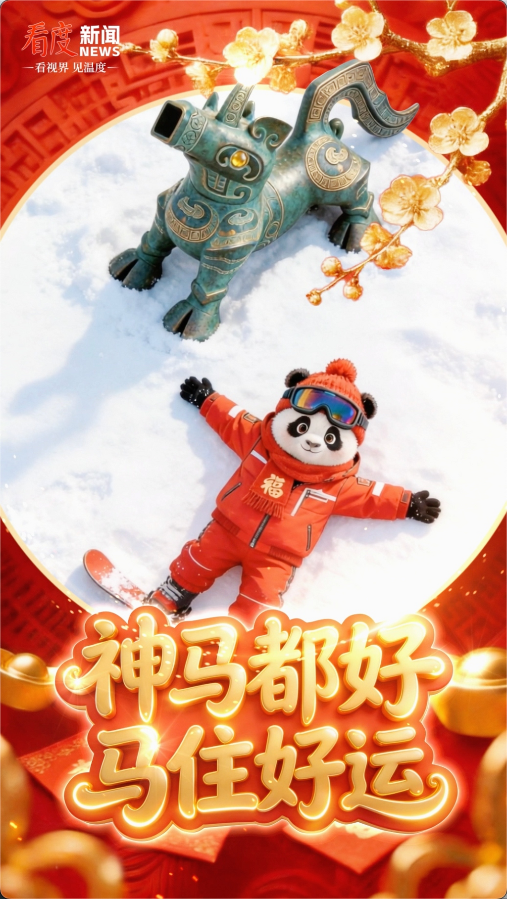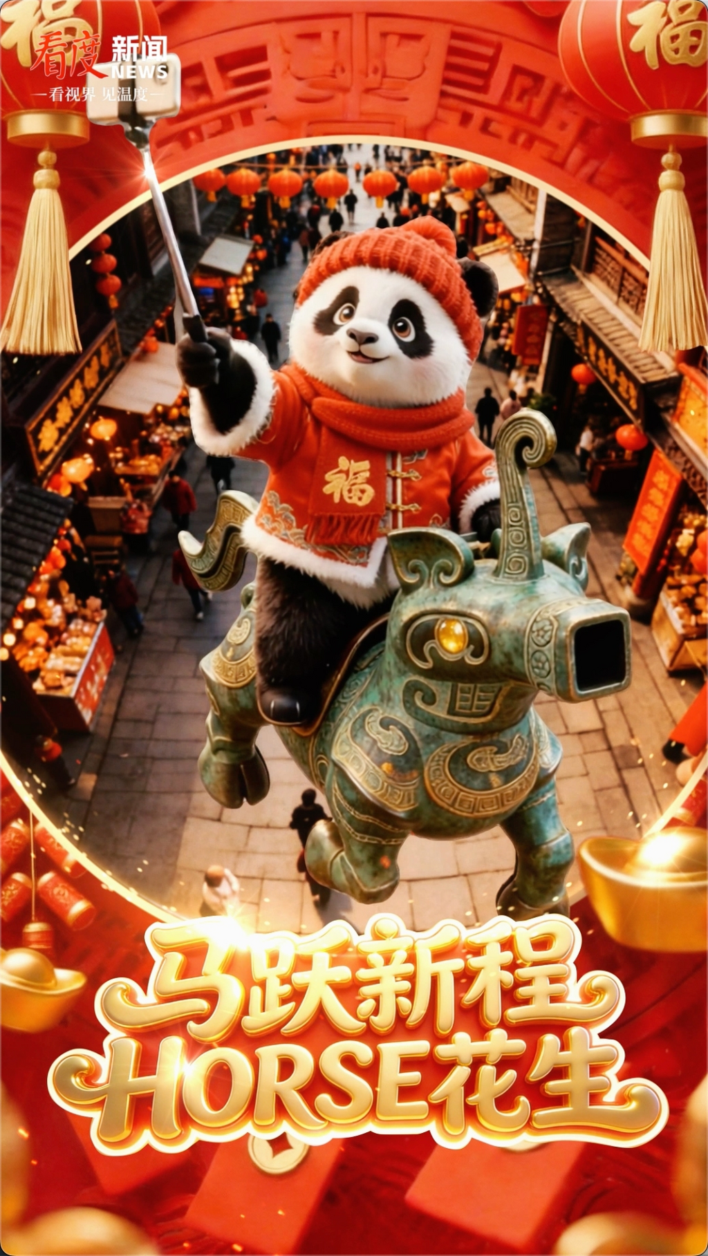 神马驮福,熊猫拜年